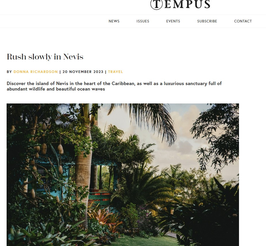 Golden Rock Inn was featured in Tempus Magazine and we also accompanied journalists on a press trip to Nevis with Paradise Promotions.