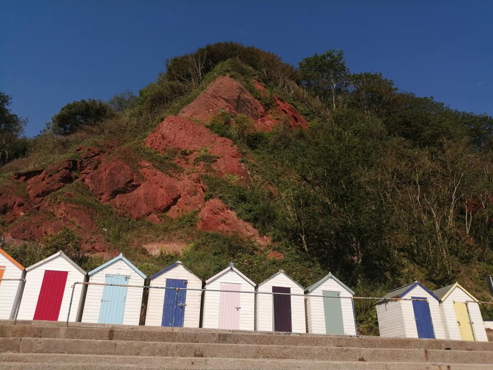 Down below, Oddicombe beach is rusty-coloured with bright beach huts speckled against the green cliffs. The water shines a lovely aquamarine in the sunlight. Early in the morning, the red-hued beach was perfectly deserted, there was not much beach at this hour, although later in the day at low tide, with ample space to build sandcastles.