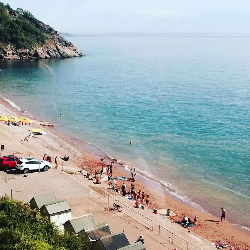 The South West Path runs along the cliff-top behind the beach on its way to Elberry Cove, so every now and then, a gorgeous steam train chugs along at regular intervals over the grand arched railway bridge built by Isambard Kingdom Brunel. This is the Paignton and Dartmouth Steam Railway train crossing Hookhills Viaduct, with its nine arches scaling to an impressive height of 85 ft and 116 yards from head to foot. The long beach is popular with surfers and water sports enthusiasts. Out to sea, Torquay rests towards the left bay and in the other direction lies Brixham. Furthermore, there is an expanse of open green park space to the rear of the beach to enjoy a game of football.