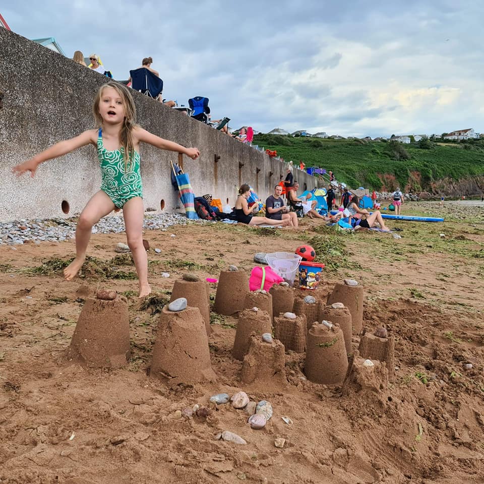 Paignton itself is very touristy with a pier full of amusements, little kids rides and a plethora of places to eat and drink. It has a long and wide yellow sandy beach and at low tide an expanse of beach. It was busy as expected, but social distance was observed as we found a nice spot to build sandcastles and to stretch out, catching the last rays of the day as our delighted daughter ran in and out of the sea.