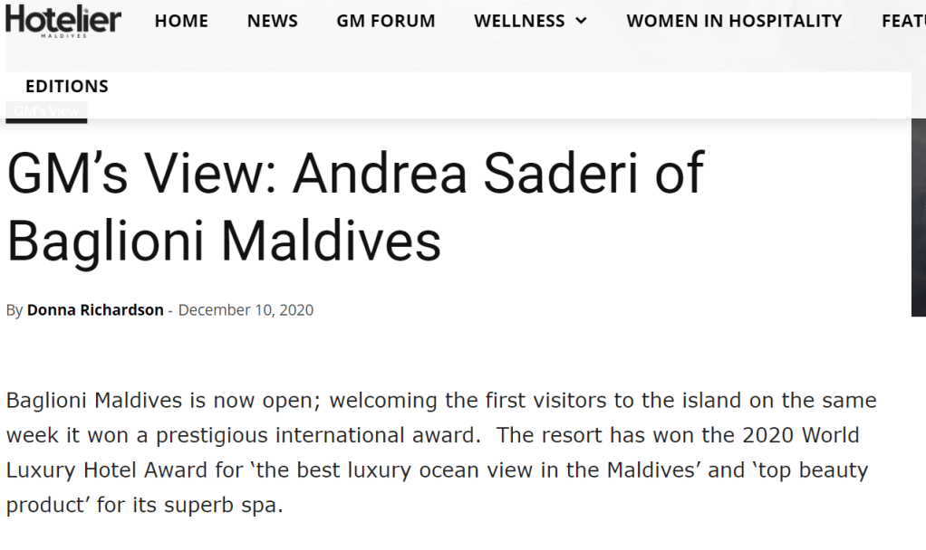 GM’s View: Andrea Saderi of Baglioni Maldives | (hoteliermaldives.com)